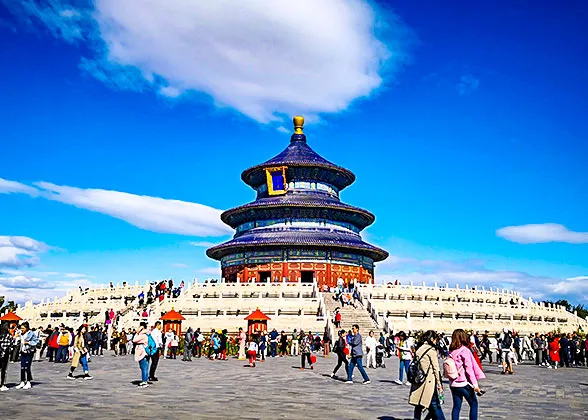 The Hall of Prayer for Good Harvests has three layers of eaves; each layer is covered with blue colored glaze symbolizing the heaven. The layer-by-layer eave creates an atmosphere of getting closer to heaven.