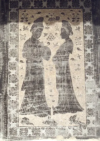 The Tomb of Prince Tide has a remarkable array of murals throughout, and 40 pieces illustrate the day to day life in the Tang court. Those bright and colorful murals span an area of 400 square meters (480 square yards) and cover rich subjects including parades, tame leopards, eagles, maidservants and eunuchs. Auspicious symbols the Black Dragon and White Tiger are featured and the mural of the 'Parade of the Crown Prince' is of great historical interest because this 3-meter-high (nine-feet-high) picture shows towers, city walls and other important buildings of the ancient capital city. You can see about two hundred guards of honor riding in chariots, on horseback or on foot as they prepare to march out from Chang'an, today's Xi'an, in a colorful royal procession. The roof of the tomb is painted with patterns of sky diagrams. Other murals illustrate the hunting habits of the imperial household. Members of the Tang royalties were keen hunters and they used specially trained cheetahs to bring down their prey. The cheetahs were presented to the royal family as tributes from client states. This again gives an insight into the strategic influence and importance of the Tang regime. At the sight of those paintings, visitors are impressed by the glory of the Tang Dynasty and excellent artistic attainments Chinese painters possessed 1,300 years ago.