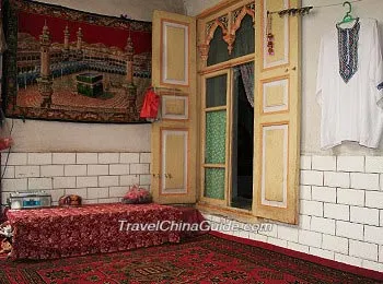 Kashgar Old Town is the unique maze city in China. Over two hundred narrow alleys crisscross each other. If you get lost, you can use the hexagonal tiles as a guide to help you out. The tiles with four corners will lead you to blind alley. Most of the buildings here are in a combined Islamic and Uygur style. It gives a feeling of being in the Middle East. The houses in the core area make it one of the world's large adobe complexes. No end to mud walls and colorful doors here. The doors of residences of the town are open to visiting. When both panels of the doors are open, the host is home. When one door panel is open, the hostess is home alone. When a curtain is placed over the door, then someone is visiting and the owner is preoccupied. Although the houses of the local are modest, every one of them sports a courtyard.