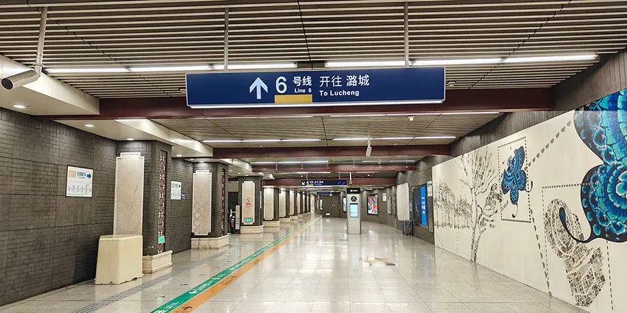 Tip: Passengers need to pass through a 109-yard (100-meter) passageway to reach the platform of subway line 8 for transfer.