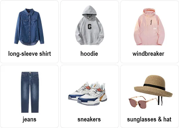 You can wear a light long-sleeve shirt paired with a windbreaker, a knitwear or a trench coat. As for the bottom, light jeans or sweatpants coupled with comfortable sneakers are practical.