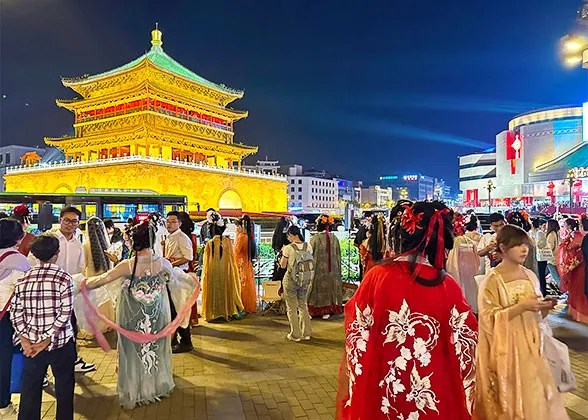 Try to book an afternoon ticket for the Shaanxi History Museum or the magnificent Terracotta Army, which are not only worth visiting but also indoor places with air conditioning. As for outdoor attractions like the Giant Wild Goose Pagoda, the Bell Tower, and the Drum Tower, it is best to go after 15:00, when the temperature begins to decrease. In the evening, the Muslim Quarter can provide you with delicious local food. After dinner, you will find the temperature is much more comfortable, and you can go to Defu Bar Street, see the illuminated Bell Tower and the City Wall, or admire the night show at the South Gate of the City Wall.