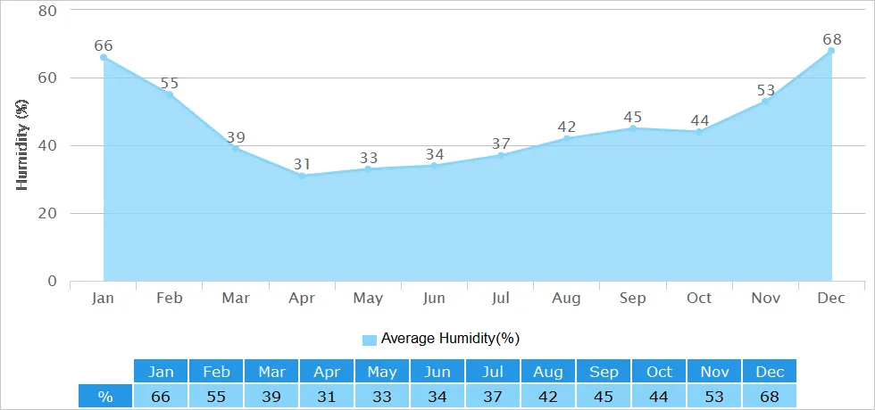 In addition to quite low precipitation, Kashgar also experiences high evaporation rates, resulting in extremely dry conditions throughout the year. During summer, average humidity levels drop to just 30-40%. At this time, you are likely to feel parched when staying outdoors.