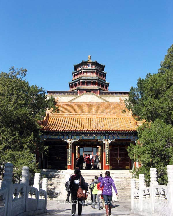 The front-hill area is the central part of the Summer Palace, with most of the important buildings concentrated here. The Tower of Buddhist Incense is the central building, with the other palaces scattered on its two sides, east and west.