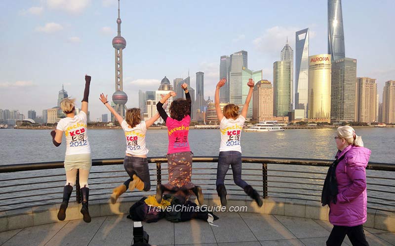 The Bund stretches over 1,100 meters along the west bank of Huangpu River, beginning at Yan'an Road in the south and ending at Waibaidu Bridge.